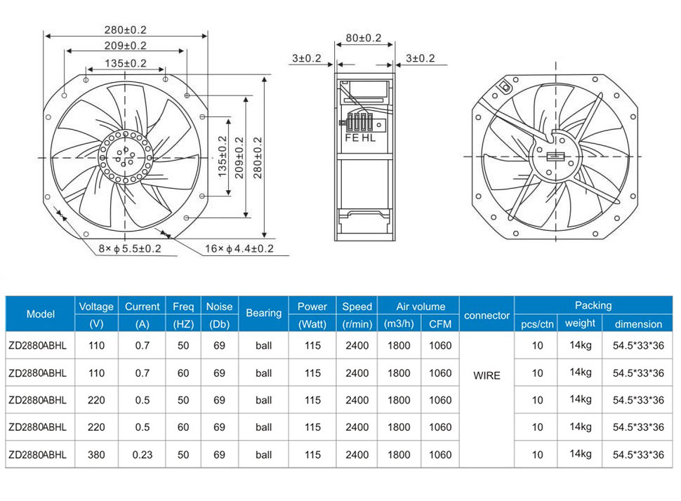 風(fēng)葉:注塑一次成型或金屬鋼板沖壓焊接成,表面陰極電泳防腐蝕處理。